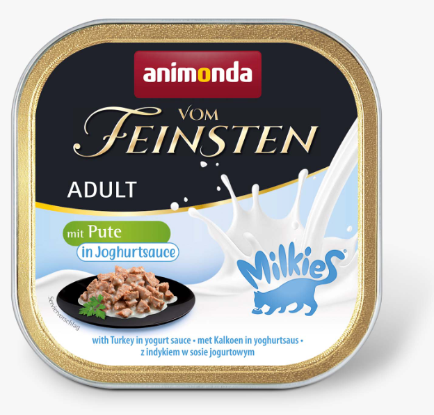 Vom Feinsten Adult (Индейка в йогуртовом соусе) - это сбалансированное, вкусное, здоровое питание для взрослых кошек от 1 до 6 лет. Качество мясных ингредиентов в нежных кусках в сочетании с восхитительным сливочным, молочным или йогуртовым соусом гарантирует неповторимое удовольствие. Прекрасные рагу для гурманов обеспечивают взрослых кошек всеми необходимыми питательными веществами.