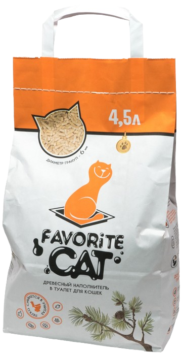 Древесный наполнитель Favorite Cat состоит исключительно из натурального экологически чистого материала — гранул хвойных пород, подвергнутых высокотемпературной обработке и спрессованных по специальной технологии.
