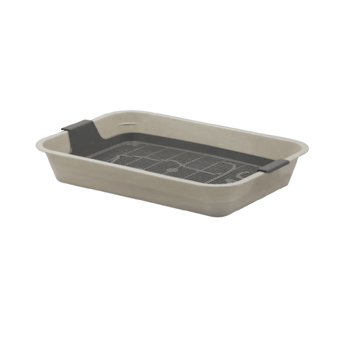 Лоток с сеткой помогает питомцу не раскидывать наполнитель вокруг туалета, так как наполнитель находится внутри, под решеткой.