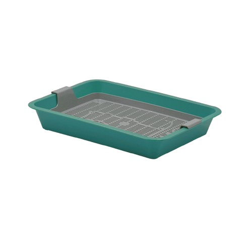 Лоток с сеткой помогает питомцу не раскидывать наполнитель вокруг туалета, так как наполнитель находится внутри, под решеткой.