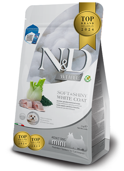 Сибас (20%), дегидратированный белок сибаса (20%), сладкий картофель, рыбий жир (сельдь), гидролизированный белок рыбы, сушеная спирулина (5%), семена льна, сушеный фенхель (2.5%), свиной жир, волокна гороха, дегидратированные белки птицы (курица, индейка), дегидратированные белки жвачных животных (ягненок, говядина), дегидратированный свиной белок, дегидратированный рыбный белок, люцерновая мука, инулин, фруктоолигосахариды, дрожжевой экстракт (источник манноолигосахаридов), сушеный шпинат, подорожник, сухие пивные дрожжи, дикальцийфосфат, хлорид калия, хлорид натрия, экстракт алоэ вера, глюкозамин, хондроитин сульфат.