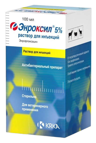 Энроксил 5% раствор в качестве действующего вещества в 1 мл содержит 0,05 г энрофлоксацина, а также вспомогательные компоненты. По внешнему виду представляет собой прозрачный раствор светло-желтого цвета. Препарат расфасовывают во флаконы из темного стекла по 50 и 100 мл.