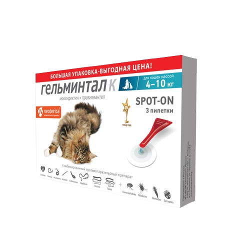 Гельминтал Spot-on для кошек - противопаразитарный препарат широкого спектра действия.