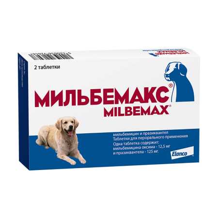 Мильбемакс таблетки для собак в качестве действующих веществ содержат мильбемицина оксим и празиквантел. Выпускают препарат в двух модификациях: «Мильбемакс таблетки для щенков и маленьких собак» с содержанием в одной таблетке мильбемицина оксима – 2,5 мг, празиквантела – 25 мг и «Мильбемакс таблетки для крупных собак» с содержанием мильбемицина оксима – 12,5 мг и празиквантела – 125 мг/табл.