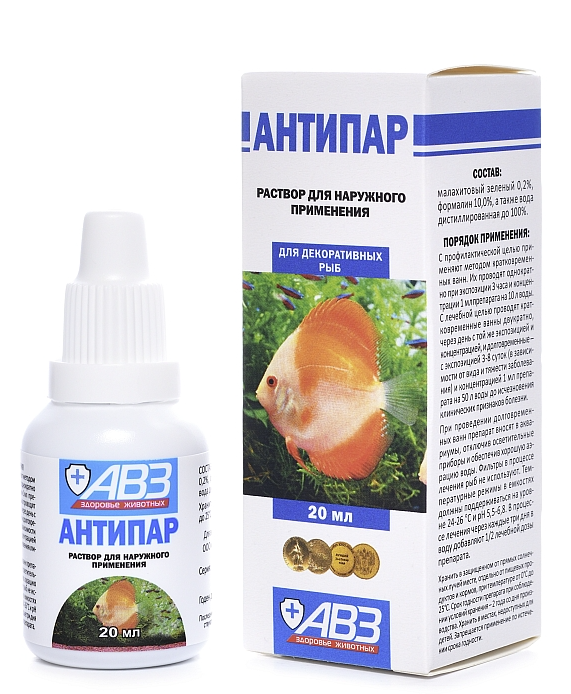 Пресноводных рыб лечат непосредственно в аквариуме, морских рыб — в отсадниках. Препарат вносят непосредственно в аквариум или отсадник из расчета 1 мл на 50 л воды. Необходимое количество препарата растворяют в 200-300 мл воды и равномерно распределяют по всему объему. Курс лечения при заболеваниях, вызываемых инфузориями и грибками, составляет 5 дней, при оодинозе и ихтиофтириозе — 10 дней. Во время лечения оодиноза температура воды должна быть не меньше 24 °С, а емкость должна быть хорошо освещена. Если лечение продолжается более 5 дней, в аквариум или купочный сосуд добавляют половину вышеуказанной дозы. После окончания лечения, при нормализации состояния рыб, воду в аквариуме заменяют. На время лечения необходимо отключить водные фильтры, снабженные сорбентами. Для проведения кратковременных ванн, в случае сильного поражения рыб, готовят лечебный раствор из расчета 1 мл препарата на 10 л воды. Рыб купают в этом растворе 3 часа и возвращают в аквариум. Такую обработку повторяют дважды через день. При оодинозе (вельветовой болезни) рыб обрабатывают пятикратно с перерывом в один день.
