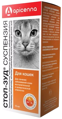 Стоп-зуд суспензия благодаря наличию в ее составе высокоэффективного противовоспалительного компонента, витаминов, метионина и янтарной кислоты, оказывает комплексное воздействие на раздраженную кожу, быстро устраняет неприятные ощущения сухости, зуда и дискомфорта у животных.