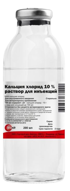 Кальция хлорид 10 % раствор для инъекций хранят в закрытой упаковке производителя в сухом, защищённом от прямых солнечных лучей месте, отдельно от продуктов питания и кормов, при температуре от 0 °С до 25 °С.