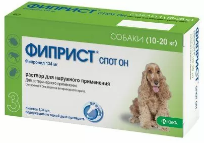 для собак весом 10-20 кг - пипетка 1,34 мл;