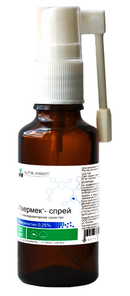 Ивермек-спрей обладает выраженным акарицидным действием на преимагинальные и имагинальные фазы развития саркоптоидных (Sarcoptes spp., Psoroptes spp., Otodectes cynotis, Notoedres cati) и демодекозных (Demodex canis) клещей, паразитирующих у собак, кошек, пушных зверей и грызунов, а также кнемидокоптозных клещей (Knemidocoptes spp.), паразитирующих у птиц. Механизм действия ивермектина, входящего в состав препарата, заключается в его воздействии на величину тока ионов хлора через мембраны нервных и мышечных клеток паразита. Основной мишенью являются глутаматчувствительные хлорные каналы, а также рецепторы гамма-аминомасляной кислоты. Изменение тока ионов хлора нарушает проведение импульсов, что приводит к параличу и гибели паразитов. Вспомогательные компоненты препарата — пантенол и лидокаин оказывают ранозаживляющее и местное анестезирующее действие с выраженным противозудным эффектом, хлоргексидина биглюконат проявляет антибактериальное и противовоспалительное действие. После наружного применения лекарственного средства ивермектин, практически не всасываясь в системный кровоток, в основном накапливается в эпидермисе, волосяных луковицах и сальных железах тела животного, оказывая акарицидное действие в течение 5 – 7 дней. Ивермек-спрей по степени воздействия на организм теплокровных животных относится к малоопасным веществам, в рекомендуемых дозах не оказывает кожнораздражающего и резорбтивно-токсического действия. При попадании в глаза ивермек-спрей вызывает слабое раздражение. Препарат токсичен для рыб и пчел.
