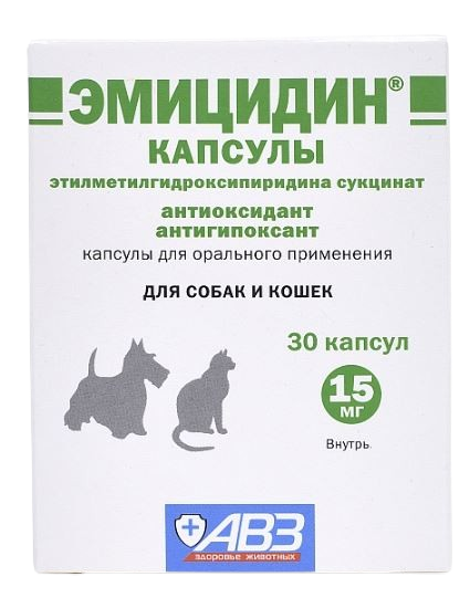 Эмицидин капсулы в одной желатиновой капсуле содержит 15 или 50 мг этилметилгидроксипиридина сукцината.