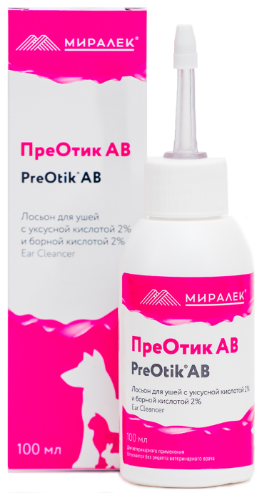 - Практический отзыв: «При использовании ПреОтика АВ заметно лучше вычищается серозное содержимое при полипах в ушной раковине собаки».