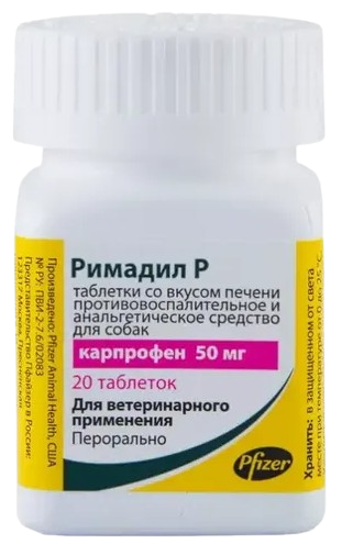 Карпрофен - действующее вещество Римадила Р - оказывает противовоспалительное, анальгезирующее и жаропонижающее действие. Карпрофен ингибирует циклооксигеназу в цикле арахидоновой кислоты. При этом препарат преимущественно влияет на ЦОГ2, которая индуцируется в ответ на развитие воспаления. В результате блокируется синтез воспалительных простагландинов, вызывающих воспаление, отек и боль. В терапевтических дозах карпрофен значительно слабее действует на ЦОГІ, и, благодаря этому, практически не оказывает влияния на синтез протективных простагландинов. Таким образом, карпрофен не препятствует нормальным физиологическим процессам в тканях, особенно в желудке, кишечнике, почках и тромбоцитах.