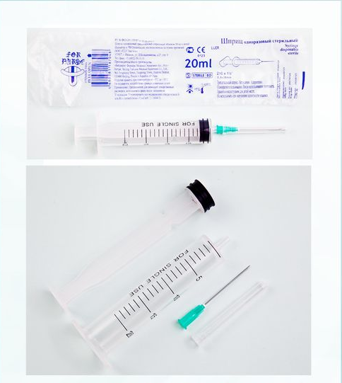 Шприц инъекционный однократного применения, трехкомпонентный объемом 20 мл с иглой 21G (0.80х38мм)