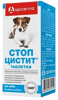 Стоп-цистит таблетки применяют собакам индивидуально внутрь с кормом или принудительно в ротовую полость на корень языка в дозе: