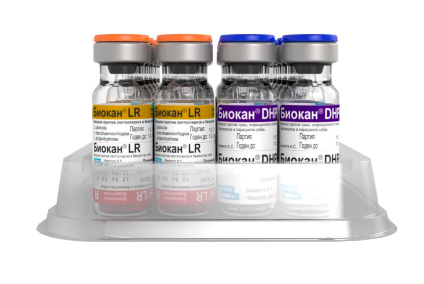 Компоненты вакцины Биокан DHPPi+LR расфасованы в стеклянные флаконы по 1,0 см3 (1 доза). Флаконы укупорены резиновыми пробками, укрепленные алюминиевыми колпачками.