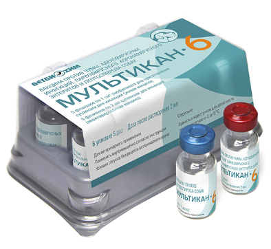 Вакцина МУЛЬТИКАН-6 предназначена для профилактики чумы, аденовирусных инфекций, парвовирусного, коронавирусного энтеритов и лептоспироза собак.